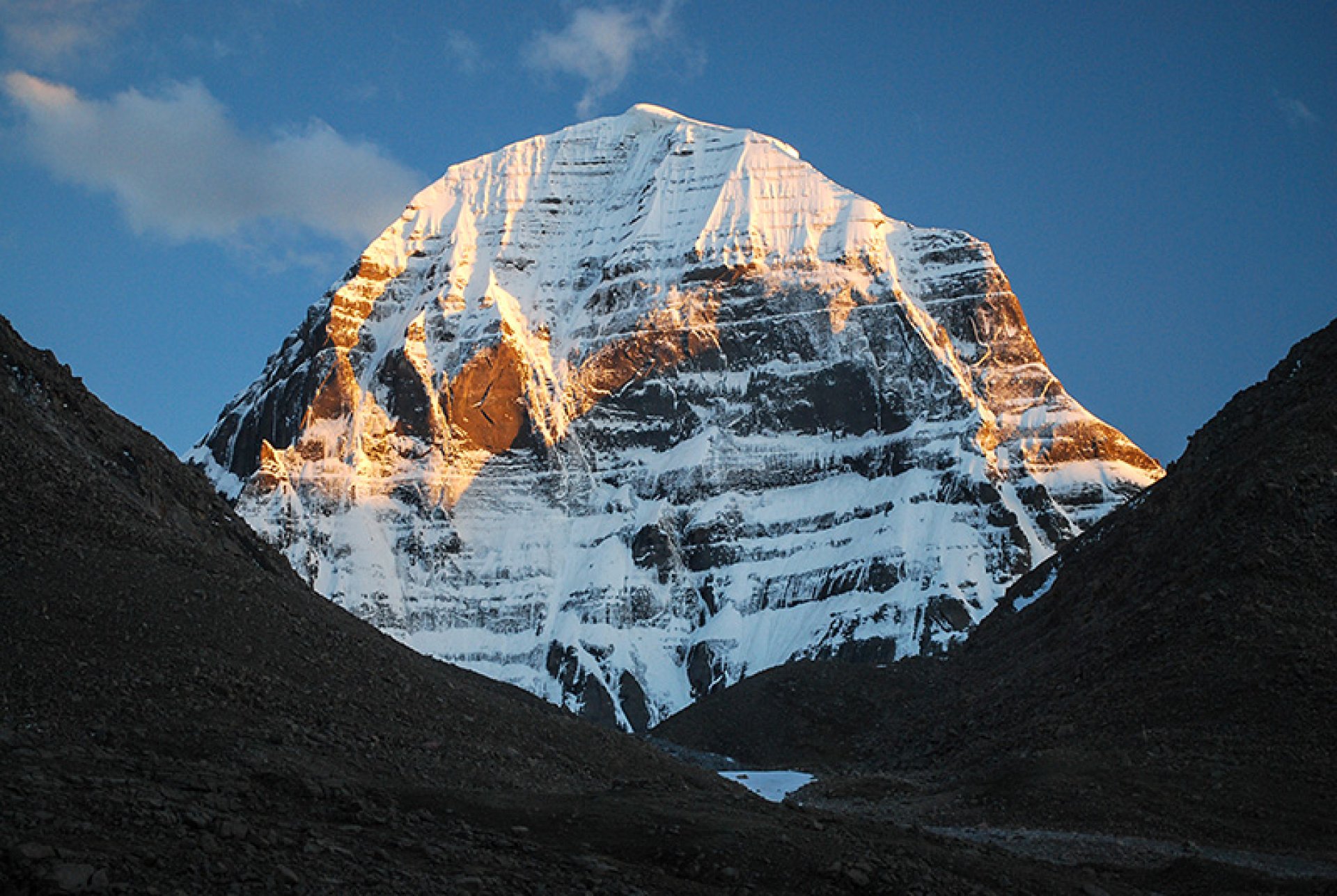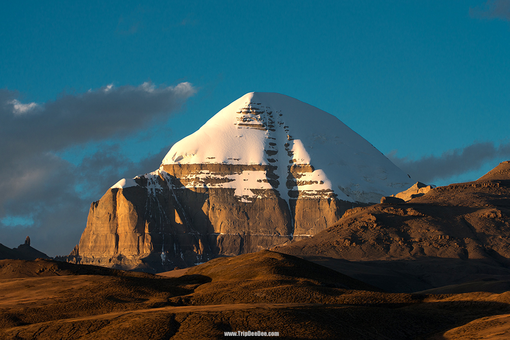 หลังอาหารนำท่านนั่งรถอุทยานเข้าไปด้านในเพื่อถ่ายภาพภูเขาไกรลาส (Mount Kailash, Gang Rinpoche冈仁波齐峰) เป็นยอดเขาแห่งหนึ่งของเทือกเขาหิมาลัย ตั้งอยู่ในทิศตะวันตกของเขตปกครองตนเองทิเบต ทางตอนเหนือของยอดเขานันทาเทวีราว 100 ไมล์ มีความสูง 6,638 เมตร จัดว่าเป็นยอดเขาสูงเป็นอันดับที่ 32 ของโลก และสูงเป็นที่ 19 ในบรรดายอดเขาของเทือกเขาหิมาลัย เป็นยอดเขาที่มีอายุกำเนิดมาจนถึงปัจจุบัน 50 ล้านปี เขาไกรลาส ปกติจะปกคลุมด้วยหิมะและน้ำแข็งสีขาวโพลน จนได้อีกชื่อหนึ่งว่า ภูเขาสีเงิน ไกรลาส เป็นคำวิเศษณ์ในภาษาสันสกฤต แปลว่า สีเงินยวง ทุกปีจะมีผู้จารึกแสวงบุญตามศาสนาต่าง ๆ เดินทางมาที่นี่ โดยเชื่อว่าเป็นการบูชาและได้อยู่ใกล้พระศิวะ โดยทำการประทักษิณให้ครบ 39 รอบ เป็นการเคารพบูชาอันสูงสุด ในศาสนาฮินดูเชื่อว่าเขาไกรลาสเป็นที่ประทับของพระศิวะ ในศาสนาพุทธมีคัมภีร์สารัตถปกาสินีระบุว่าเขาไกรลาสเป็นเขาที่ประเสริฐสุดในบรรดาภูเขาในป่าหิมพานต์และยังปรากฏในศาสนาเชนและศาสนาบอนด้วย เชิงเขาไกรลาสเป็นต้นกำเนิดของแม่น้ำสำคัญหลายสายของภูมิภาคแห่งนี้ ได้แก่ แม่น้ำพรหมบุตร แม่น้ำคงคา แม่น้ำสินธุ และแม่น้ำ Sutlej นอกจากนี้ยังมีทะเลสาบอีก 7 แห่งอยู่รายรอบ ซึ่งแห่งที่สำคัญ คือ ทะเลสาบมานสโรวระ(Manasarovar) หรือ ทะเลสาบมานัสสะ