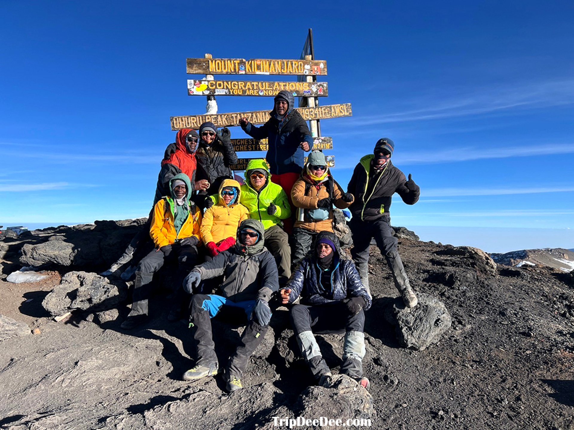 -ในวันที่ปีนขึ้นพิชิตยอด Uhuru Peak อากาศหนาวจัด ควรใส่เสื้อผ้าเป็นเลเยอร์ ถุงมือ ถุงเท้า หมวกไหมพรม ผ้าพันคอ