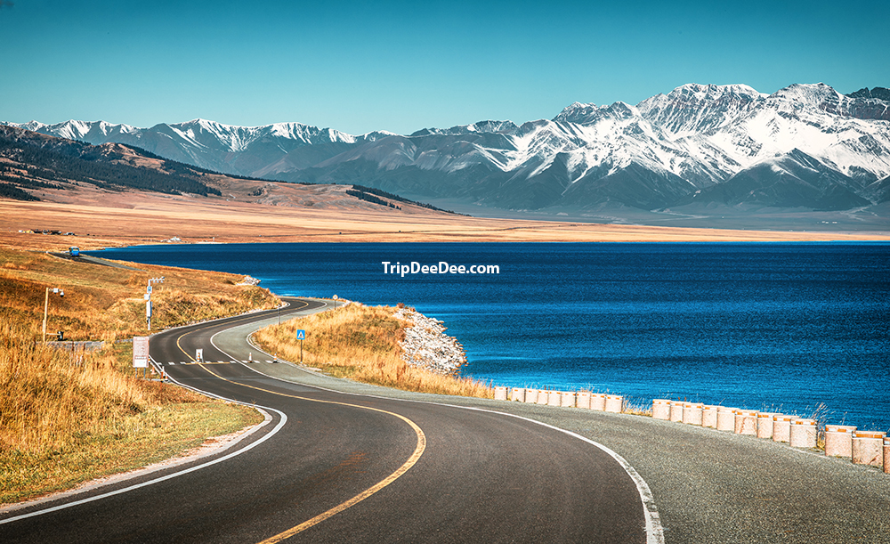 - ทะเลสาบไซหลีมู่ ทะเลสาบน้ำจืดขนาดใหญ่ที่สุดในเขตซินเจียง ใกล้ชายแดนคาซัคสถาน ล้อมรอบด้วยเขาเทียนซาน