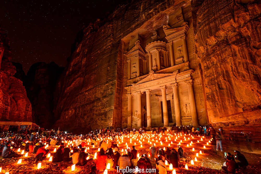20.00 น. นำท่านเที่ยวชมนครเพตรายามค่ำคืน(Petra by night) สัมผัสกับความงามของเพตราที่เมืองหินสีกุหลาบประดับด้วยแสงเทียน ส่องประกายระยิบระยับด้วยเปลวไฟเล็กๆนับร้อยเริ่มจาก Siq ไปยัง The Treasury จุดเทียนมากกว่า 1,500 เล่ม เพื่อให้เป็นสถานที่ท่องเที่ยวที่มีทัศนียภาพงดงามยามค่ำคืน (ให้บริการทุกวันจันทร์ วันพุธและวันพฤหัสบดี)