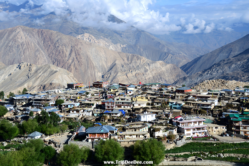 ซึ่งเป็นเมืองที่ใหญ่ที่สุดและศูนย์กลางการปกครองส่วนท้องถิ่นของหุบเขา Spiti ที่อยู่ห่างไกลในเทือกเขาหิมาลัยตะวันตกในเขต Lahaul และ Spiti ของรัฐหิมาจัลประเทศ ตั้งอยู่บนความสูงจากระดับน้ำทะเล 3,650 เมตร เป็นพื้นที่ที่มีความกดอากาศสูง คล้ายกับทิเบตและลาดัค ทั้งในด้านสภาพภูมิประเทศ ภูมิอากาศ และวัฒนธรรมทางพุทธศาสนา ตั้งอยู่ริมแม่น้ำ Spiti เป็นเขตการค้าและศูนย์กลางการค้าที่ใหญ่ที่สุดในหุบเขา Spiti