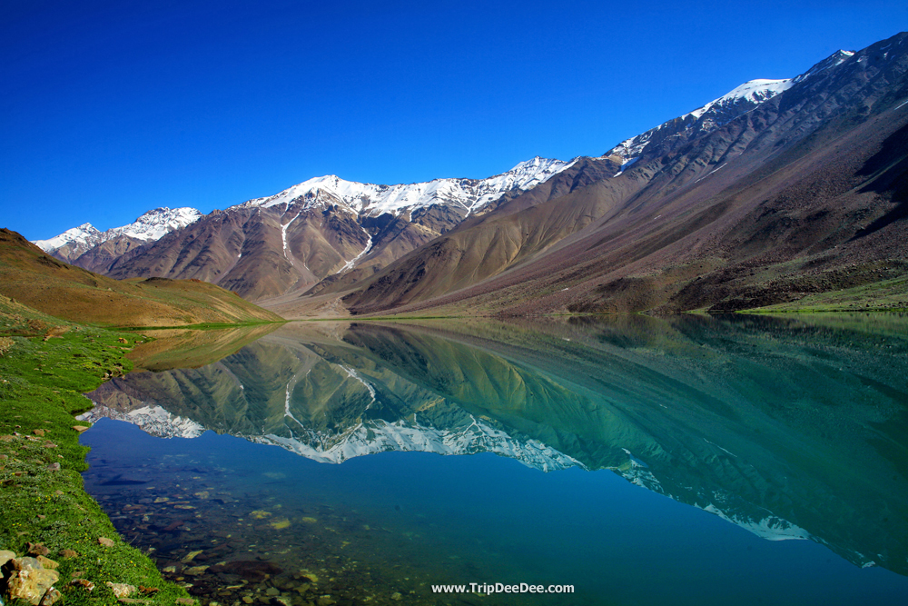บ่าย ออกเดินทางกันต่อถนนช่วงนี้จะค่อนข้างขรุขระ ข้ามลำธาร ไปจนถึงทะเลสาบ Chandrataal Lake จัดว่าเป็นทางโหดที่สุดของวัน แวะเช็กอินเก็บสัมภาระ จากนั้นออกไปเก็บแสงเย็นกันที่ทะเลสาบ Chandrataal Lake ซึ่งตัวทะเลสาบนั้นจะอยู่ห่างจากแค้มป์ที่พัก ประมาณ 2-3 กม. โดยทะเลสาบแห่งนี้ตั้งอยู่บนความสูงจากระดับน้ำทะเล 4,300 เมตร ใจกลางเทือกเขาหิมาลัย ชมทะเลสาบเปลี่ยนสีจากเฉดสีฟ้าใสเป็นมรกต ล้อมรอบด้วยทุ่งหญ้าสีเขียว มีเทือกเขา Chandra Bhaga สีขาวที่บริสุทธิ์เป็นฉากหลัง จากจุดจอดรถเราต้องเดินเท้าเข้าไปที่ตัวทะเลสาบอีกประมาณ 1 กม.