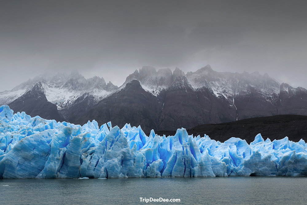 จุดหมายที่สามของเส้นทางเดินป่า นั่นคือธารน้ำแข็งเกรย์ เส้นทางเริ่มต้นด้วยการเดินเลียบไปรอบๆ Cerro Paine Grande จุดสูงสุดของเทือกเขา (3,050 เมตร) พร้อมชมวิวทะเลสาบเกรย์และภูเขาโดยรอบ หลังจากนั้นเดินไปอีก ประมาณหนึ่งชั่วโมงครึ่งจะถึงจุดชมวิวแรก ซึ่งสามารถมองเห็นธารน้ำแข็งเกรย์จากระยะไกลได้ หลังจากนั้นเดินอีกอีก 1.5 ถึง 2 ชั่วโมง จะถึงจุดชมวิวหลัก ซึ่งตั้งอยู่ตรงหน้าธารน้ำแข็ง